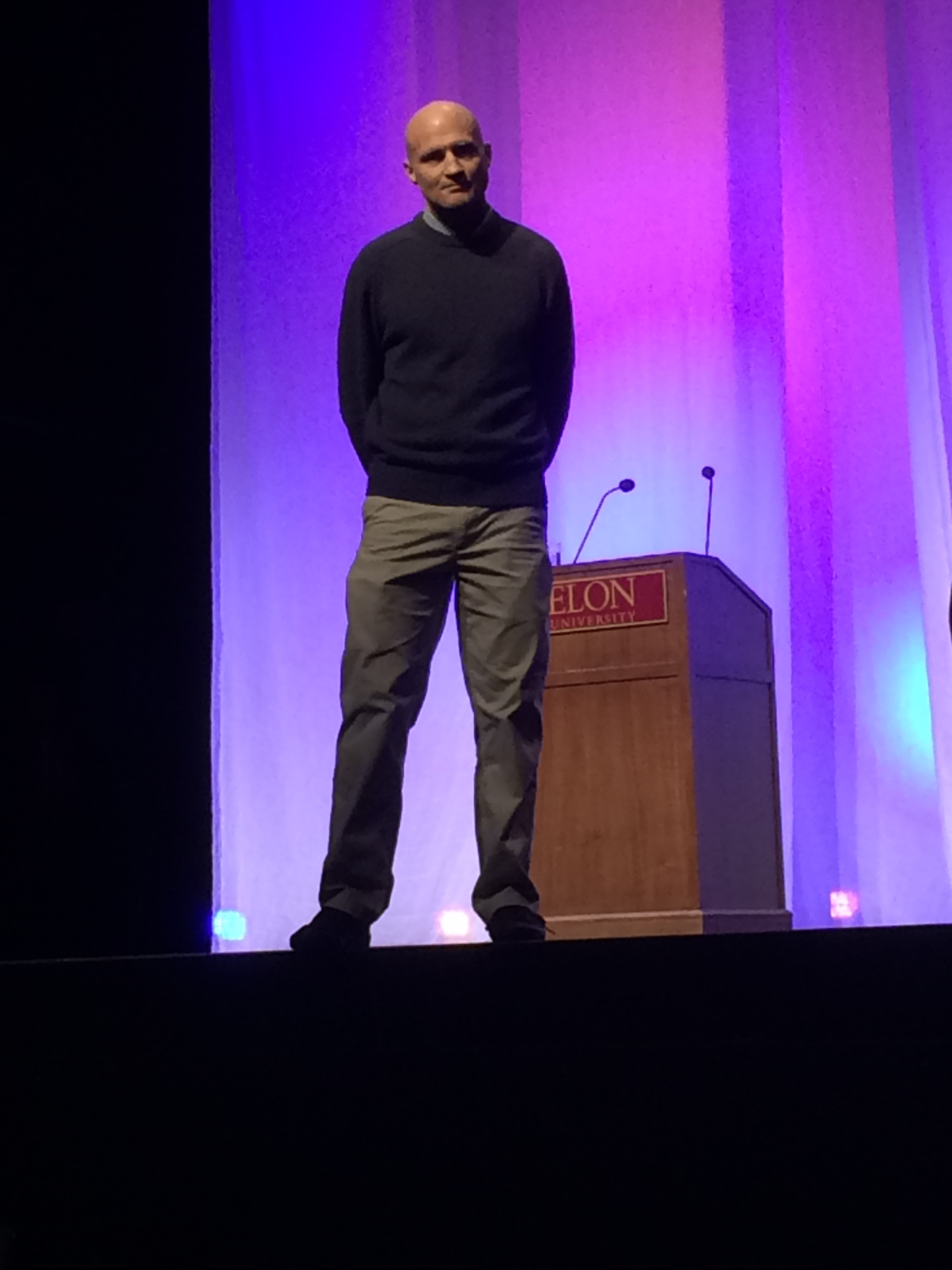 Scott Dikkers, founder and former editor of the satirical newspaper, “The Onion,” spoke to an audience of students and faculty last Tuesday, Feb. 23, at Elon University.