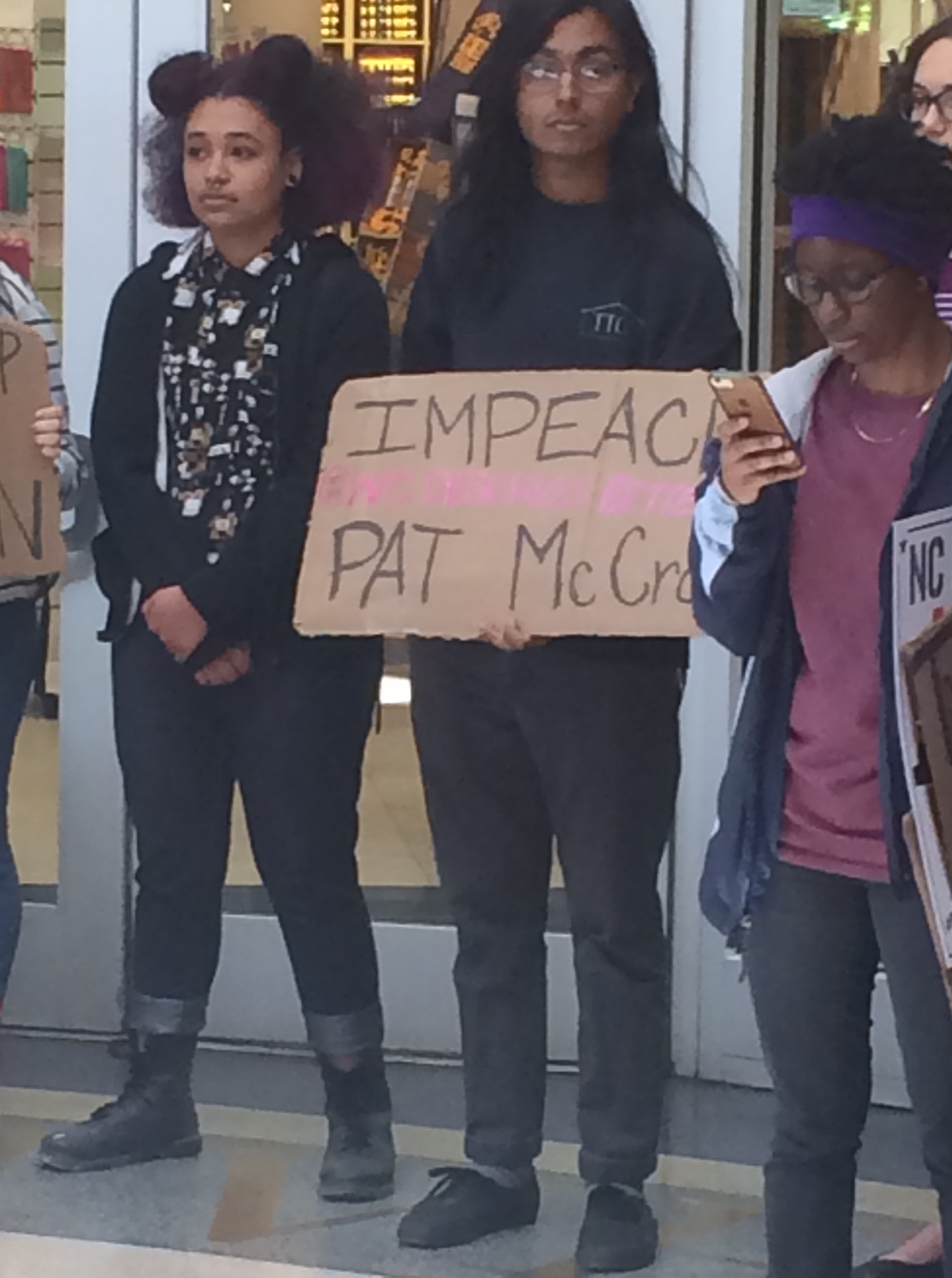 “I’m here because my life is directly impacted by this bill. I’m not trans, but I have a trans girlfriend… This bill [HB2] doesn’t have our best interests in mind at all. It’s transphobic, it puts our bodies in danger, so I guess I’m here to make sure they know we’re here to stand against this,” said Springs.