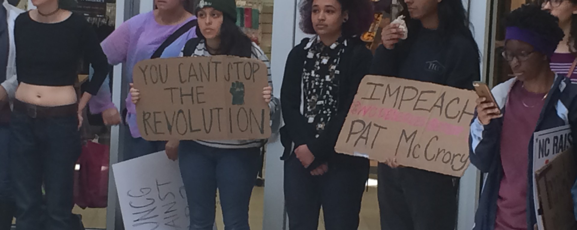 LGBT students and allies — predominantly black transgender people and transgender people of color — led the protest to display their opposition to HB2, as the bill affects their ability to use the restroom which corresponds with their gender identity, find and keep jobs, as well as maintain a living wage.