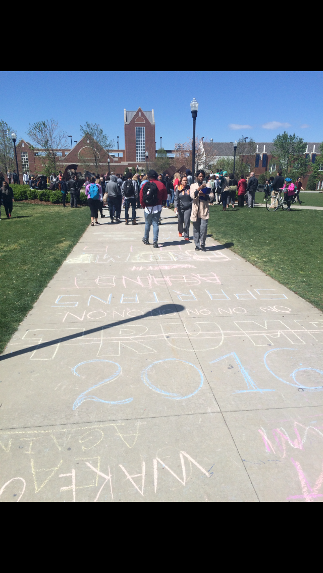 As it turned out, it didn’t take very long for our chalked messages to be covered in obscenities, pro-Bernie messages and water. I suppose free speech, when you disagree with it, is seldom tolerated on our campus.