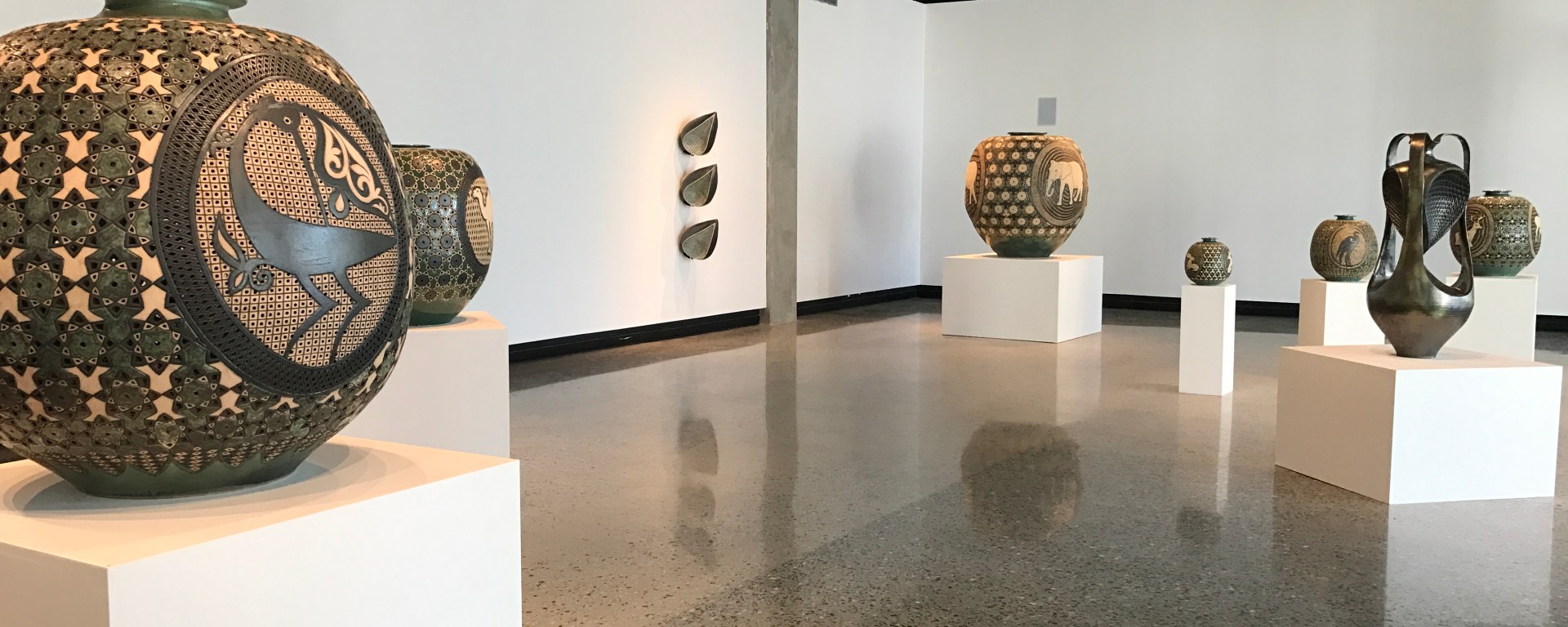 This collection is a medium of reflection on the beauty nature and cyclical rhythms in the natural world. Said has an understanding of cyclical rhythms shows in the patterns that appear in every piece in the exhibit. With the same color scheme and pattern-work on each sculpture, the gallery is extremely streamlined, and the similarities between pieces allow for the differences to truly stand out.