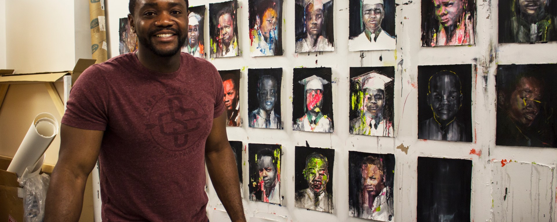 Using oil on canvas to grapple with difficult subject matter such as traumatic childhood experiences and police brutality, UNCG grad student, Charles Williams, calls painting his ministry. Focusing on social issues from both a historical perspective, and from a personal one, Williams uses his paintings to engage with his audience on an emotional level. While studying here at UNCG, Williams is a practicing artist whose work reflects his personal struggles, and uses his thoughts about the world as a way to bring people together.