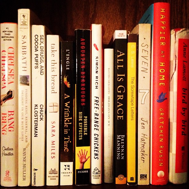 The backroom of the bookstore was full and lively. There were noise-makers being passed around, and the hosts suggested that the audience get drinks at the front of the store. The featured readers at this event were Brian Lampkin, Alice Lesperance and Jason Herndon.