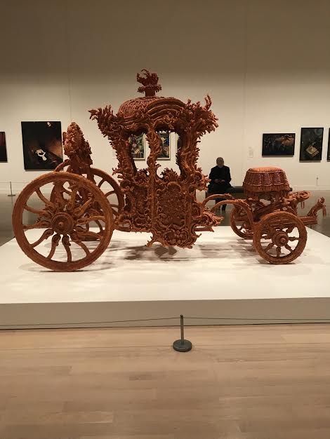Another piece of art that seemed to take on center stage at the gallery was the Cinderella carriage piece. Titled “Mother-Load” by Timothy Horn, it is a life-size Cinderella carriage made up of plywood, painted steel, aluminum foil, polystyrene foam, hot glue, acrylic medium, rock sugar and shellac.