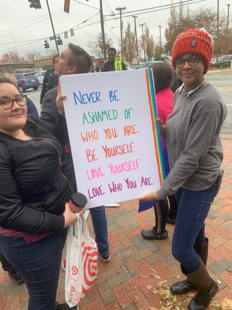 “I just wanted to let people know that they’re loved. Some of these kids, this is the first time they’ve ever been out,” said Floyd-Pickard. “I don’t want them to see the hate stuff and think that everybody thinks that. People are loved, and I hope they remember.”