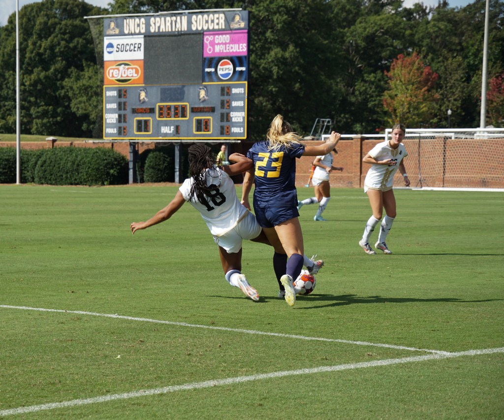 UNCG got the game underway and were off the mark almost immediately. In the second minute of the match, after a costly mistake by Wofford, UNCG took control of the game with a goal by forward, Merle Greulich. Throughout the half, both sides threatened the net, but neither side was able to convert. At halftime the score was 1-0 in favor of our UNCG Spartans.