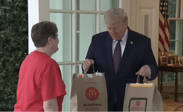 On April 13, 2026, President Donald Trump accepted a DoorDash delivery of McDonald’s at the White House. The video of this stunt went viral and the Internet quickly dubbed the delivery driver, an Arkansas grandmother of 10, DoorDash Grandma. The press soon learned that her real name is Sharon Simmons. Although DoorDash has made it clear that Simmons is a real driver for their company, not a prop, culture critics immediately expressed skepticism toward numerous elements of the stunt.